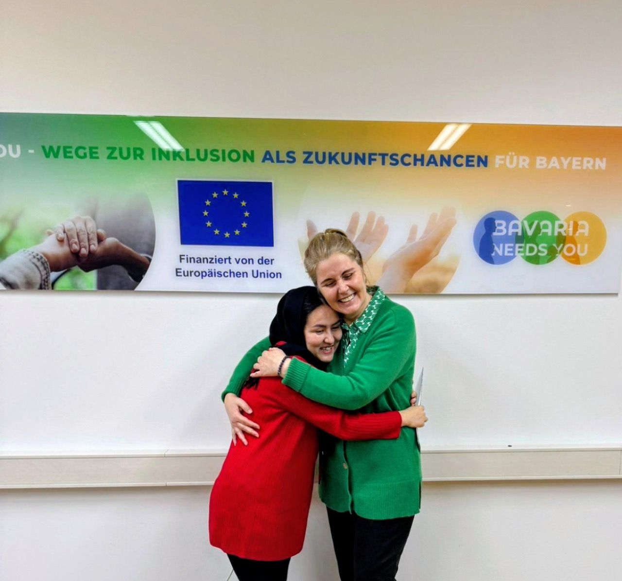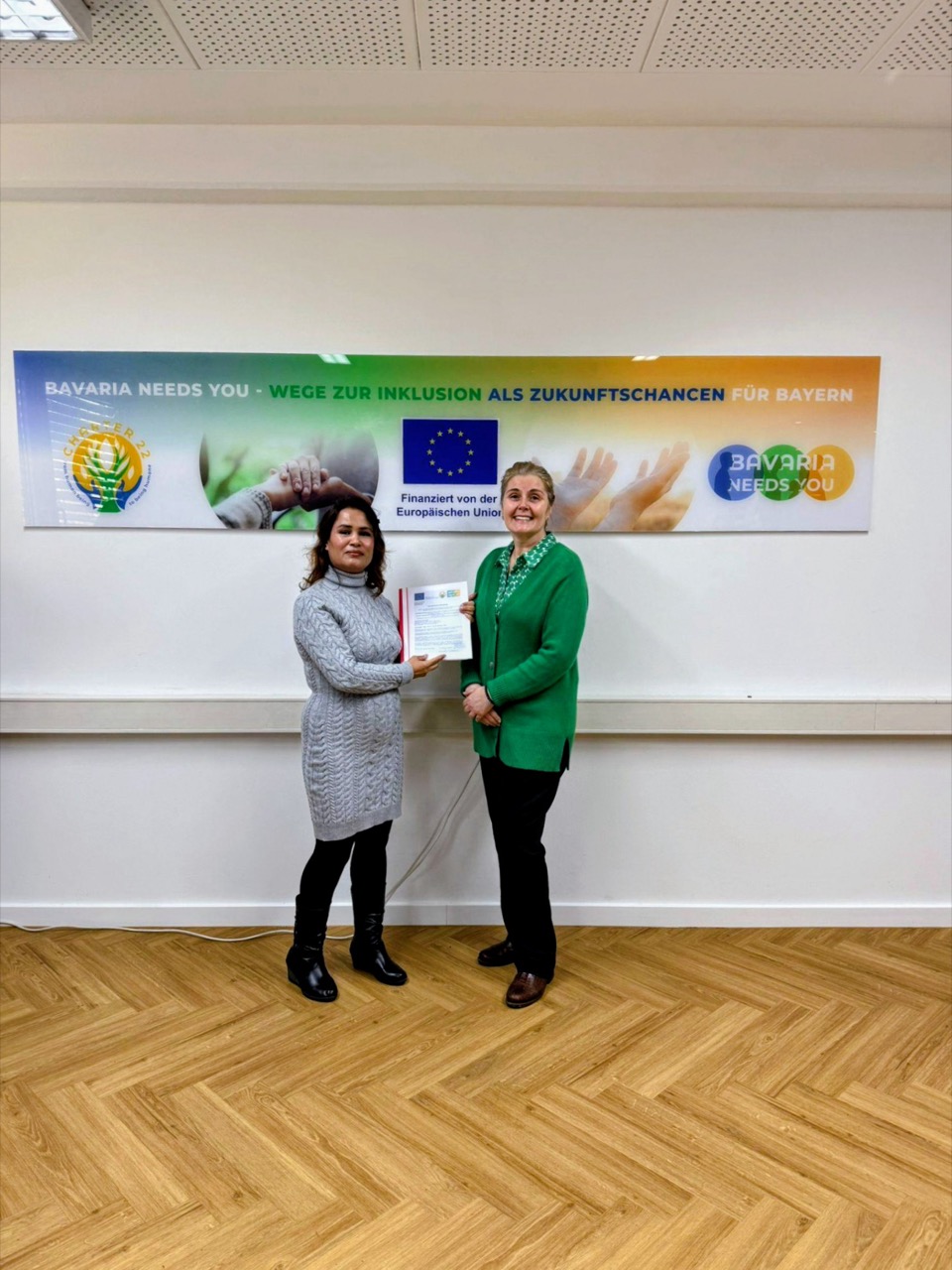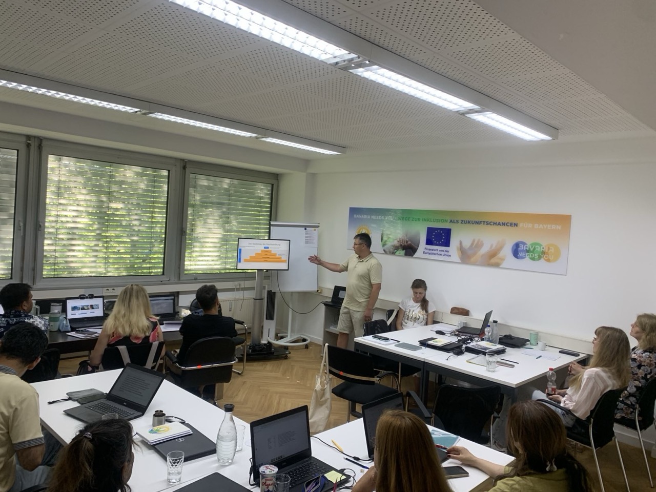 The focus of our ESF+ funded project „Bavaria Needs You – Ways to Inclusion as Future Chances for Bavaria“ is on 20 highly educated employable women and men from different age groups who have fled to Bavaria from Ukraine, Afghanistan and Iran, live in the state’s capital or in the district of Munich, have a secure legal residence status for no longer than four years, have successfully completed the integration course of the BAMF, are currently at the Jobcenter in receipt of citizen’s allowance and are available to work on the labor market.